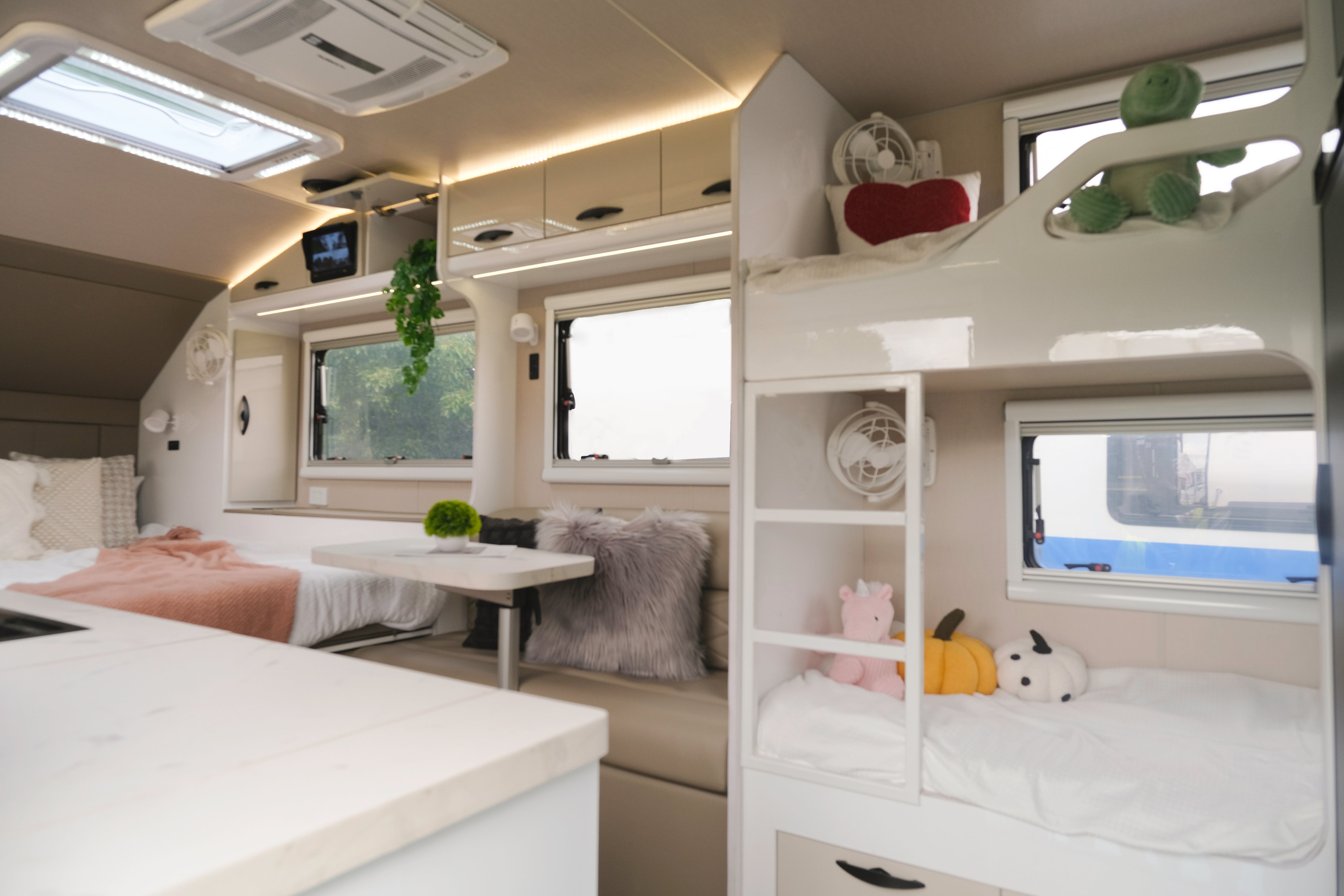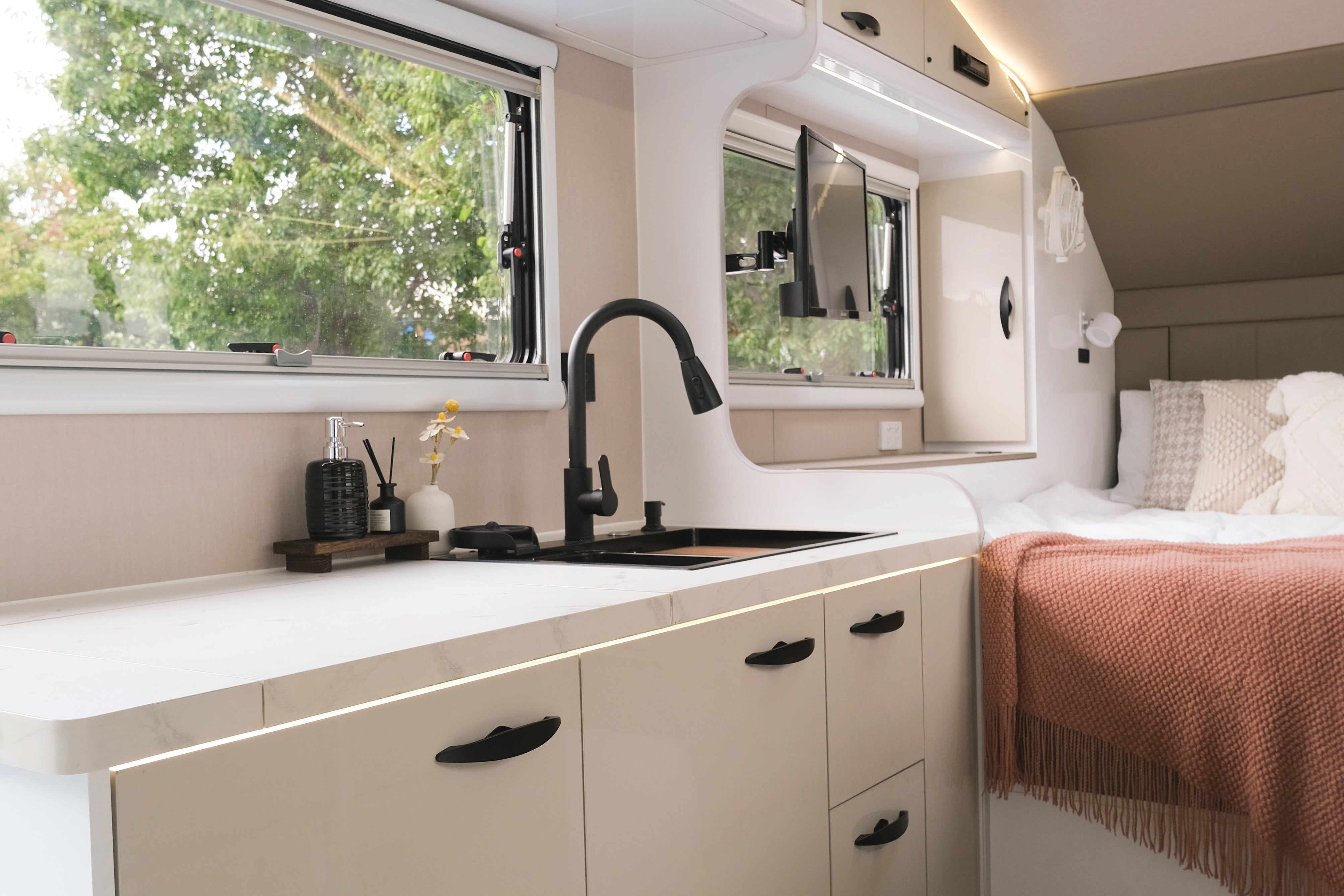 - Versatile Kitchen Setup: Cook indoors with a fully equipped internal kitchen, or take the experience outdoors with a pull-out kitchen and support up to 120L slide-out fridge.