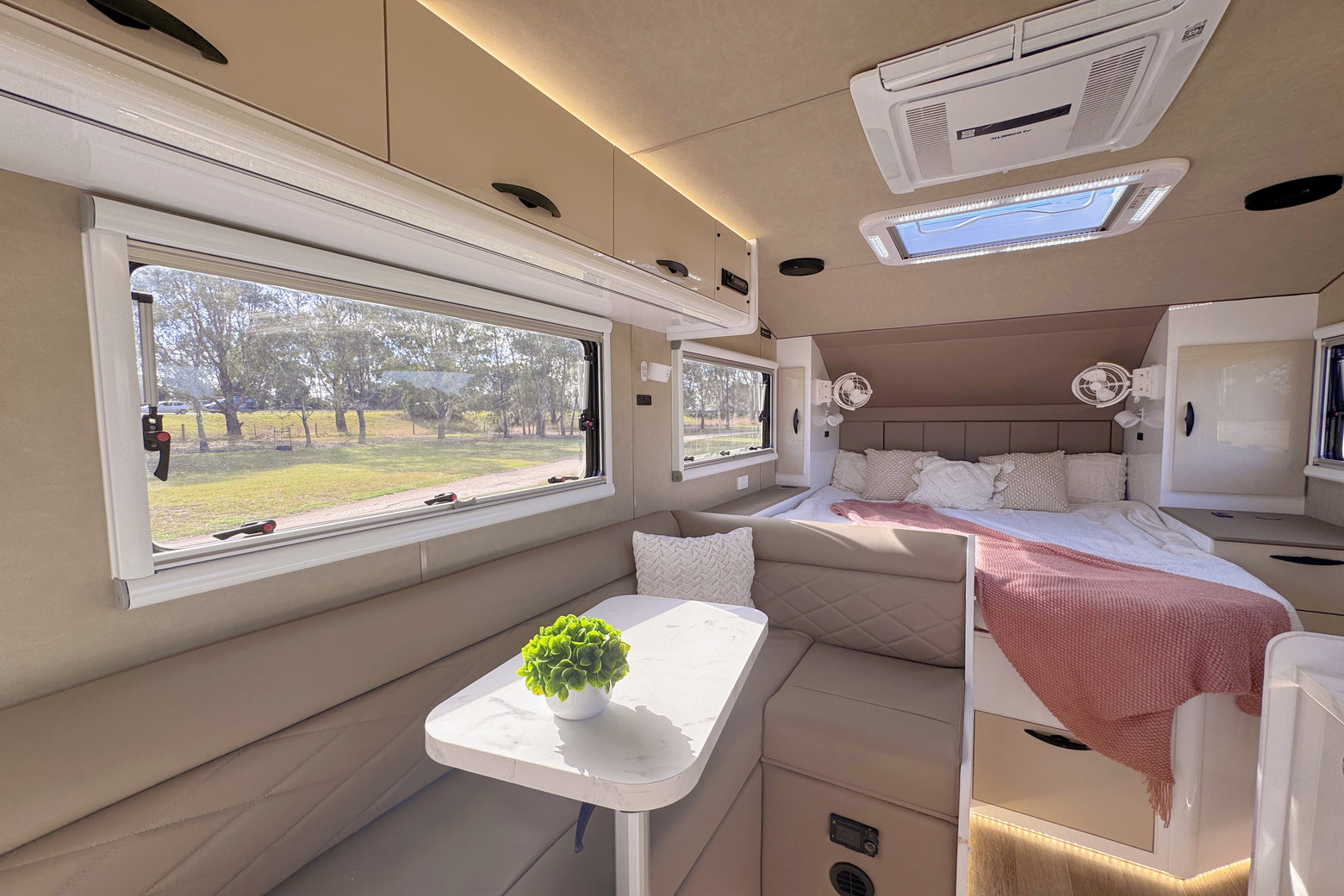 - Premium Comfort: Roof-mounted air conditioning that can runs off grid.